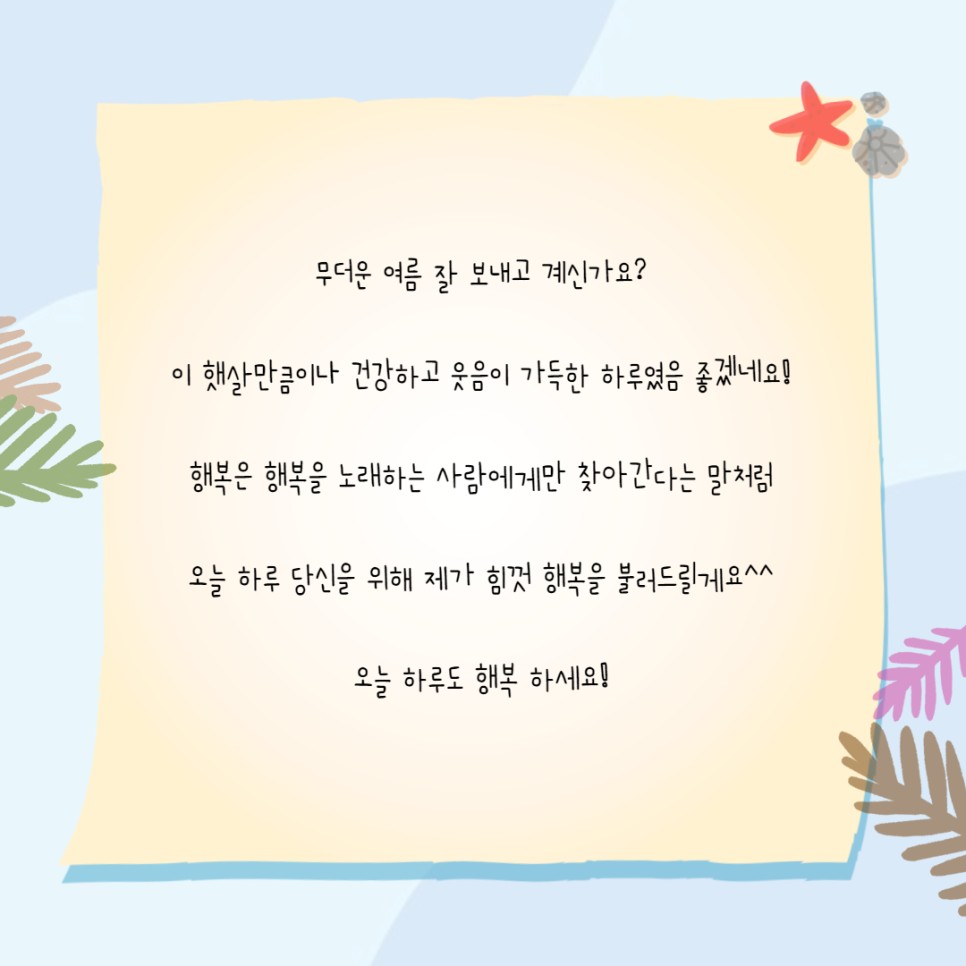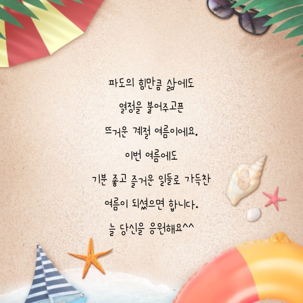 - 햇살은 뜨겁지만 마음은 시원한 여름이 되길 바랍니다.