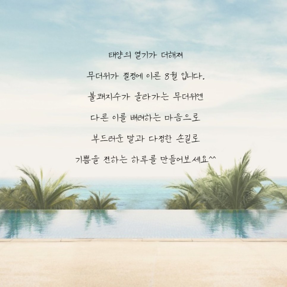 - 연일 이어지는 무더위에 건강 유의하시길 바랍니다.