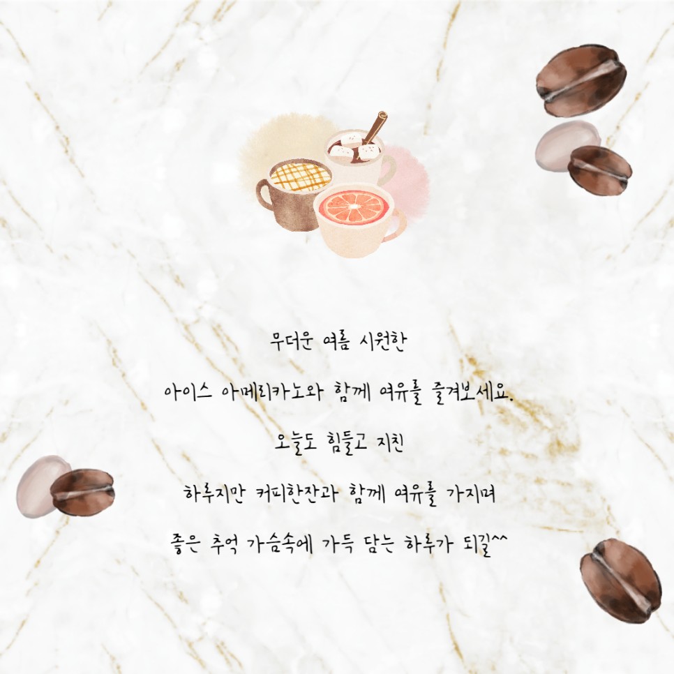 - 날씨가 너무 덥지? 시원한 음료 한 잔 생각나는 하루야 ☀️