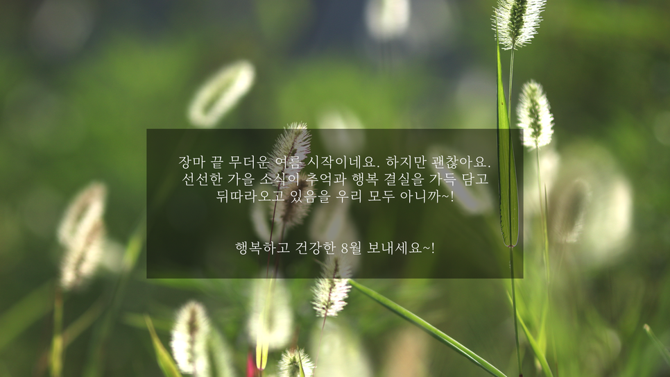 - 시원한 여름 휴가로 재충전의 시간 되시길 바랍니다.