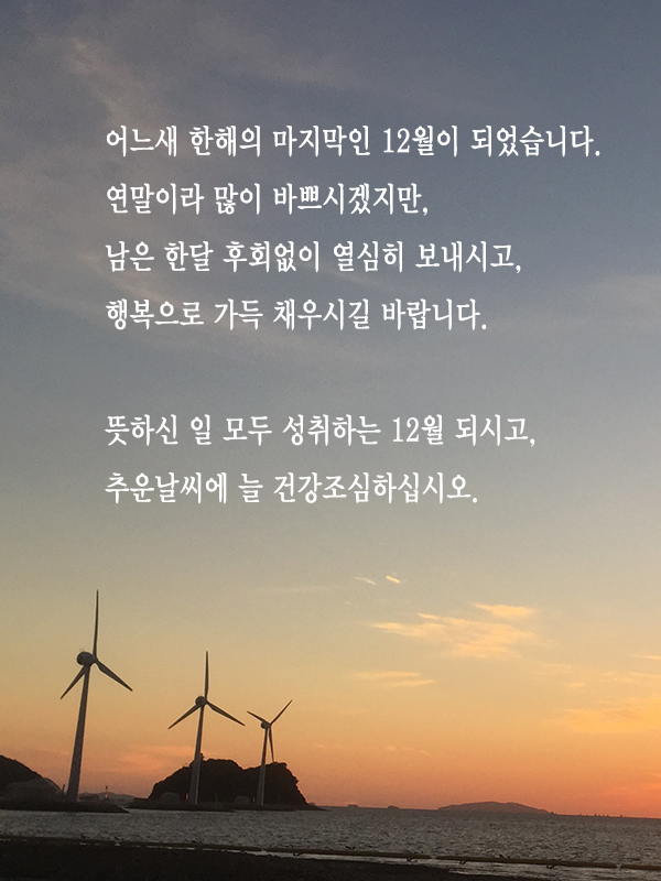 - 건강하고 행복한 한 해 마무리하시길 바랍니다.