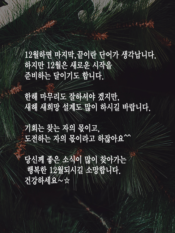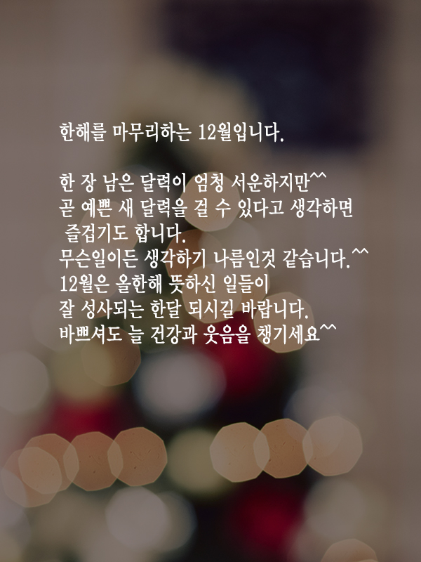 - 마음 따뜻한 연말 보내시고, 새해에는 더 큰 행복이 가득하시길 바랍니다.