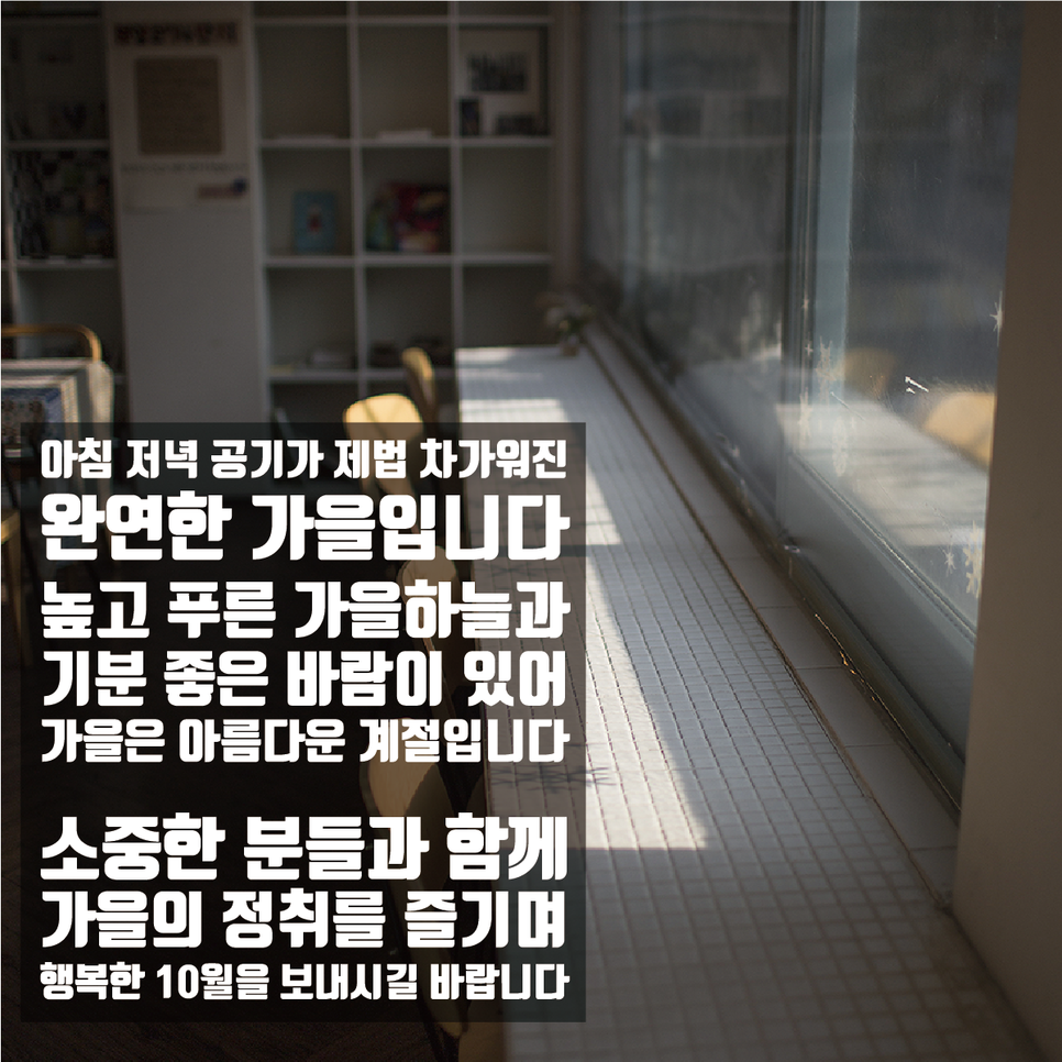 - 시원한 가을바람과 함께 활기찬 10월 보내세요.