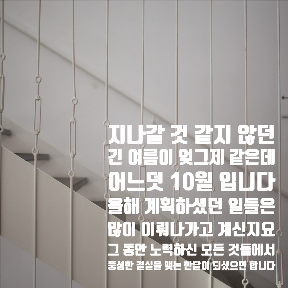 - 무르익는 계절, 마음까지 넉넉해지는 10월 되시길 기원합니다.